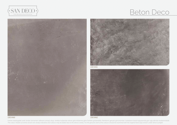 Beton Deco wordt met een troffel wordt aangebracht en gedessineerd, op basis van acrylemulsie. Net als binnengevelproducten zijn er ook buitengevelproducten.