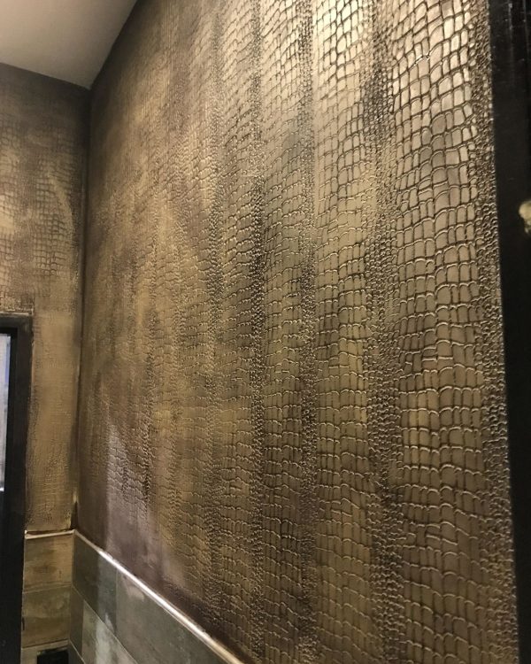 Bij verf in vloeibare vorm wordt eerst een primer op het oppervlak aangebracht. Nadat de primer is opgedroogd, wordt er verf op aangebracht. Terwijl er verf op de muur zit, wordt de krokodil Effect Paint Roller aangebracht door deze in de geselecteerde platte verf te dopen. Als het krokodillenpatroon in een andere kleur moet worden gegeven, kan de roller, nadat de gekleurde verf aan de onderkant is opgedroogd, in een andere kleur verf worden gedompeld en op de muur worden aangebracht. De onderste kleur en de bovenste patroonkleur kunnen dus verschillend zijn.